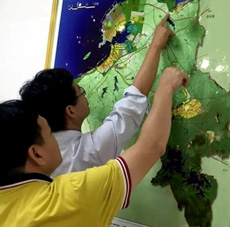 在市招商局负责领导的陪同下,参观团队驱车一行来到光村银滩的现场进行实地考察,参观了海滨新区区管委的新区城市规划室。通过现场负责人员的解说,对滨海新区未来的城市建设和公共设施发展有了更全面、更立体、更详细的了解和认识。